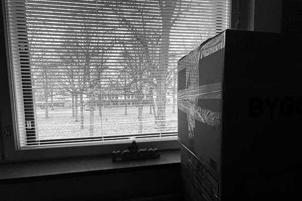 Reflections on life amidst boxes and bags